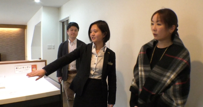 快適な暮らしのためには、どんなリフォームが望ましいか?実際にリフォームを体験できる「モデル展示場」へお客様をご案内。壁紙一つ、床の色一つで部屋の印象はガラリと変わります。売主・買主の中間に立って「快適な暮らし」を生み出す、クリエイティブな仕事です。